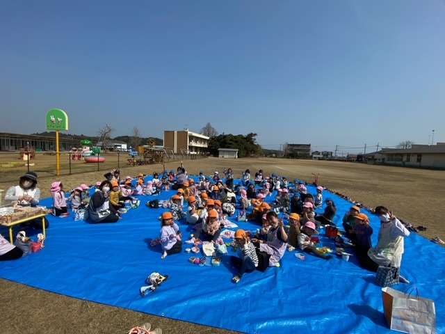 そして、園に残っている子ども達は、広い園庭でピクニック気分を味わいながら